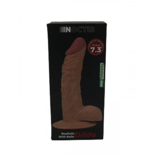 noxxx gerçekçi realistik dildo 18.5 cm testisli gerçekçi penis dokusu formundadır ve pürüzsüz yüzeylerde vantuz tabanı ile sabitlenebilir. belden bağlamalı kemerler ile kullanılabilir. cilt dostu malzemeden üretilmiştir. her kullanımdan sonra oyuncak temizleyici sprey veya ılık su ile temizlenebilir. uzunluğu 18.5 cm, kullanılabilir uzunluğu 12.5 cm, çapı 3.4 cm. ten rengindedir.