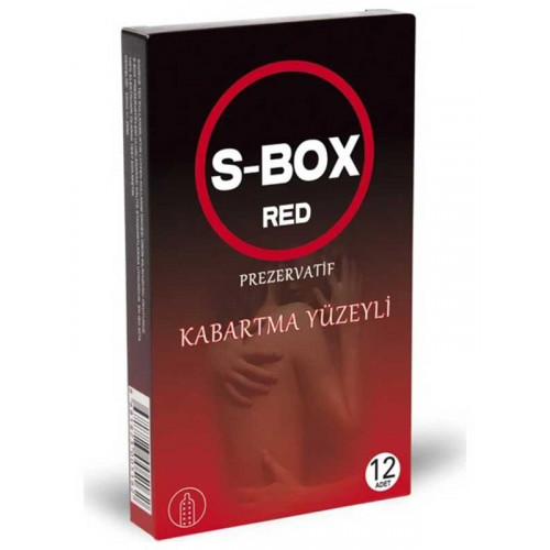 s-box kabartma yüzeyli prezervatif. paketin içinde 12 adet vardır